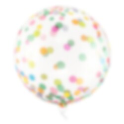 Een grote transparante bolvormige ballon met stippen in alle kleuren van de regenboog. Deze fijne ballon is perfect voor kinderfeestjes, zomerfeestjes of andere feestelijke gelegenheden.