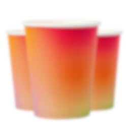 8 kleurrijke papieren bekertjes in warme kleuren. De bekertjes zijn ongeveer 10 cm hoog en hebben een inhoud van ongeveer 250 ml. Trakteer je vrienden op een lekker drankje in deze leuke bekers.