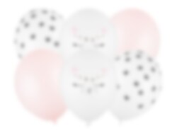 Chique ballonboeket van hoge kwaliteit in mooie kleuren met een schattig katten thema. Versier de kamer hiermee voor het katten kinderfeestje. Het pakket bevat 2 stuks lichtroze ballonnen, 2 stuks witte ballonnen met een motief van zwarte kattenpoten en 2 stuks witte ballonnen met motieven van kattengezichten. De ballonnen zijn ongeveer 30 cm in diameter en opgeblazen met gewone lucht of helium.