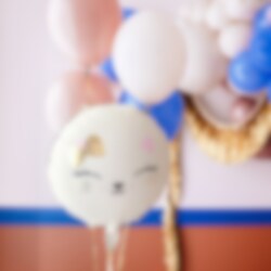 Folieballon met een schattig kattenontwerp! De ballon heeft een diameter van ongeveer 45 cm wanneer opgeblazen en kan gevuld worden met helium of lucht. Dankzij het zelfsluitende ventiel is de ballon eenvoudig op te blazen. Gebruik een ballonpomp of een rietje als je de ballon met normale lucht wilt vullen.