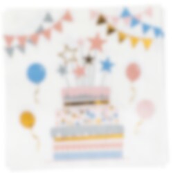20 servetten in wit met een motief van een hele mooie verjaardagstaart met goudfolie details. Match met onze accessoires uit hetzelfde katten-thema, zoals een bordjes, bekertjes en tafelloper en creëer een heerlijke tafelaankleding op het kinderfeestje.