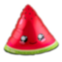 Laat deze schattige folieballon in de vorm van een watermeloen een speels detail zijn op het kinderfeestje. Het vrolijke Kawaii-ontwerp met grote ogen en een lachend gezicht maakt de ballon tot een charmante decoratie die perfect past bij een kleurrijk kinderfeestje.