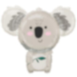 Stijlvolle folieballon van een schattige koala die een bijpassende decoratie zal zijn voor je kinderfeestje met dierenthema. De ballon is ongeveer 63 x 71 cm groot en wordt opgeblazen met lucht (met behulp van een ballonpomp) of helium.
