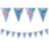 Blauwe vlaggenlijn van karton met schattige afbeeldingen van Disney’s Lilo & Stitch. Een vrolijke hangdecoratie voor een verjaardagsfeestje. Perfect om op te hangen bij feestelijke gelegenheden. De slinger is ca. 2,3 meter lang en elke wimpel is ca. 24,5 cm hoog. Gemaakt van milieuvriendelijk FSC-gecertificeerd papier.