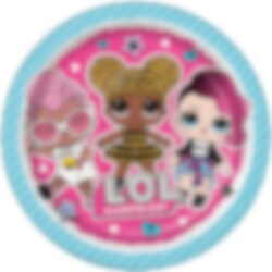 8 papieren bordjes met leuke LOL Surprise-afbeeldingen. De bordjes hebben een diameter van 23 cm.