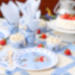 8 papieren bordjes met mooie geïllustreerde afbeeldingen uit Astrid Lindgrens Michiel van de Hazelhoeve. Deze bordjes hebben een diameter van 23 cm.