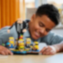 Speel in op de passie van een kind voor Minions speelgoed met LEGO® Verschrikkelijke ikke 4 Bouwbare Gru en Minions (75582). Dit creatieve bouwspeelgoed voor kinderen van 9 jaar en ouder bestaat uit een bouwbare Gru figuur omringd door dansende Minions en is een geweldig cadeau voor Minons fans. De grote figuur van Gru heeft beweegbare armen, handen en vingers. Er zijn 5 bouwbare Minions personages: Jerry met sambaballen en een fruithoed, geheim agent Dave met een propeller en walkietalkie, Beedoo Minion met een megafoon, de ukelele spelende Mel en Kevin met zijn scheetkanon. De Minions worden op een draaiend platform geplaatst en wanneer kinderen aan de zittende Minion draaien, dansen de andere Minions rond hun baas! Elke Minion kan de handen bewegen en accessoires vasthouden. Hun hoofden kunnen bewegen en de ogen kunnen worden veranderd om verschillende uitdrukkingen te creëren. Kinderen kunnen 4 Minions van de standaard halen voor extra speelmogelijkheden.