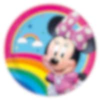 8 papieren bekers met vrolijke afbeeldingen van Minnie Mouse in heldere kleuren. Ideaal om een leuke en vrolijke tafelschikking te creëren voor een kinderfeestje met Minnie Mouse-thema.