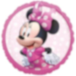 Roze folieballon met in het midden een afbeelding van Minnie Mouse. Een schattige decoratie om de feestzaal mee te versieren voor het Minnie Mouse kinderfeestje. De ballon heeft een diameter van ongeveer 43 cm wanneer opgeblazen en gevuld met lucht of helium.