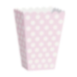 8 stuks schattige snackboxen in roze met witte stippen. Perfect om te gebruiken als lekker tussendoortje op de babyshower of feestje. De boxen zijn ongeveer 11 x 14 cm groot.