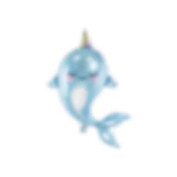 Folieballon in de vorm van een blauw glinsterende narwal. Een leuke decoratie om mee te nemen naar het kinderfeestje. De ballon wordt opgeblazen ongeveer 53 x 87 cm en wordt opgeblazen met lucht of helium.
