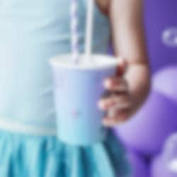 6 papieren bekers in de kleuren blauw en paars met zilverfolie zeemotieven. Leuk om toe te voegen aan de tafelaankleding met zeethema. De bekers zijn ongeveer 9 cm hoog en hebben een inhoud van ongeveer 220 ml.