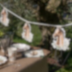 Slinger met afbeeldingen van paarden. Stijlvol om in de kamer te hangen tijdens een kinderfeestje. De slinger is 5 meter lang en bevat in totaal 10 paardenafbeeldingen, die 16,7 x 20 cm groot zijn.
