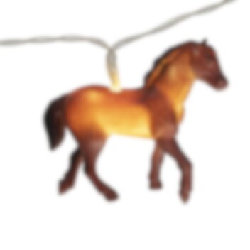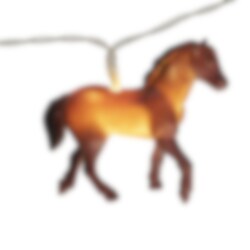 Mooie lichtslinger met 8 LED lampjes in de vorm van mooie paarden. Het absolute ultieme item om de kamer mee te decoreren voor een stijlvol effect op elk paarden-kinderfeestje.