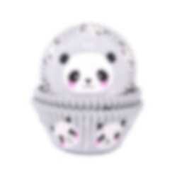 50 muffinvormpjes in een grijze kleur en met panda motieven. Gebruik deze om schattige muffins en cupcakes te maken om te serveren tijdens je panda themafeest. De muffinvormpjes hebben een bodemdiameter van 5 cm.