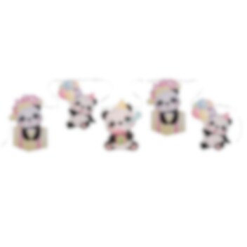 Slinger met motieven van schattige panda's. Stijlvol om in de kamer te hangen als het tijd is voor een kinderfeestje. De slinger is 5 meter lang en er zijn in totaal 10 stuks figuren en deze zijn 15 x 20 cm groot.