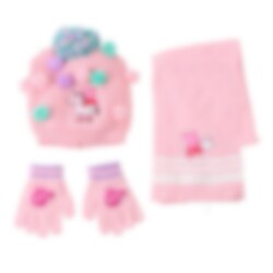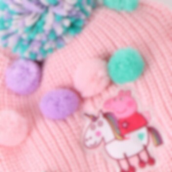 Deze schattige set met muts, sjaal en handschoenen is perfect voor koude dagen. De muts heeft een kleurrijke pompon bovenop en is versierd met Peppa Pig, de handschoenen tonen haar iconische silhouet en de sjaal is bedrukt met een schattige afbeelding van Peppa. Zowel muts als handschoenen hebben geribde boorden en zijn gemaakt van zacht en rekbaar materiaal dat kinderen warm en comfortabel houdt tijdens het buitenspelen in de kou. De set is geschikt voor kinderen van ca. 3-6 jaar.