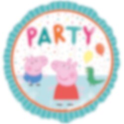 Kleurrijke folieballon met motieven van Peppa en George Pig samen met een speelgoed-dinosaurus uit de tv-serie Peppa Pig. Een schattige decoratie voor elk kinderfeestje met een Peppa Pig thema. De ballon heeft een diameter van ongeveer 43 cm wanneer hij is opgeblazen en kan worden opgeblazen met gewone lucht of helium.