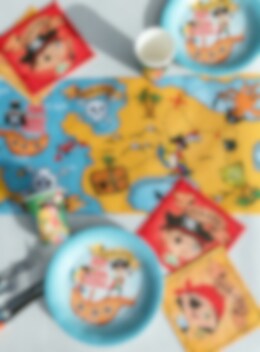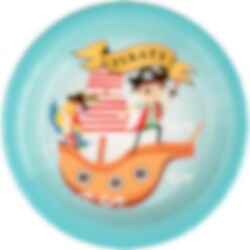 10 papieren bordjes in een blauwe kleur met een leuk motief van een piratenschip met een piraat en een papegaai en met de tekst pirate. Serveer het eten of lekkernijen op deze piraten bordjes en combineer de bordjes gerust met andere decoraties uit hetzelfde leuke piratenthema.