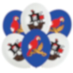 6 latex ballonnen in de kleuren donkerblauw en wit met diverse stoere piratenmotieven. Een leuk klein detail om te hebben als decoratie voor je kinderfeestje met een piratenthema.