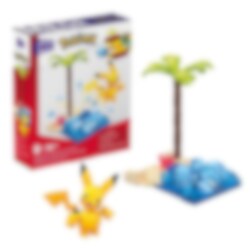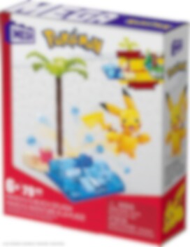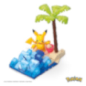 Pokémon bouwset met afbeelding van Pikachu die plezier heeft op een strand. Een leuk ding om mee te bouwen als je van Pokémon houdt.