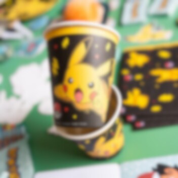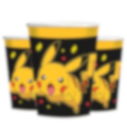 8 papieren bekers met grappige afbeeldingen van Pikachu uit Pokémon. De bekers zijn ongeveer 10 cm hoog en hebben een inhoud van ongeveer 237 ml.