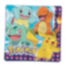 16 stijlvolle servetten met afbeeldingen van Ash's Pikachu uit de bekende Pokémon-serie. De servetten zijn 2-laags en hebben een uitgevouwen formaat van 33 x 33 cm.