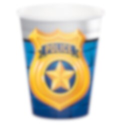 8 papieren bekers met een cool politiemotief. De bekers zijn ongeveer 10 cm hoog en hebben een inhoud van ongeveer 266 ml.