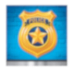 16 kleine servetten met motieven van een politie badge. De servetten hebben 2 lagen en zijn uitgevouwen 25 x 25 cm.