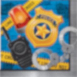 16 servetten met motieven van coole politiedingen. De servetten hebben 2 lagen en zijn uitgevouwen 33 x 33 cm.