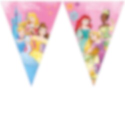Mooi vlaggenlijn van papier met aan beide zijden motieven van de lieftallige Disney-prinsessen. Een schattige decoratie om de kamer mee te versieren voor het kinderfeestje met een leuk prinsessenthema.