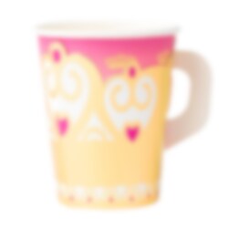 8 papieren bekers in roze ombre kleur met details van goud verijdelde prinsessenkronen. Het wordt ook geleverd met 8 stuks verwijderbare bekerhouders in goud met afbeelding van een prinsessenkroon. De bekers zijn 9 cm hoog en hebben een inhoud van 250 ml.
