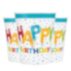 8 papieren bekers met een leuk motief van ballonnen in veel verschillende kleuren met de tekst Happy Birthday. Leuk om bij je te hebben voor het dekken van de tafel voor het kinderfeestje met een ballonthema. Past perfect bij andere accessoires uit dezelfde serie.