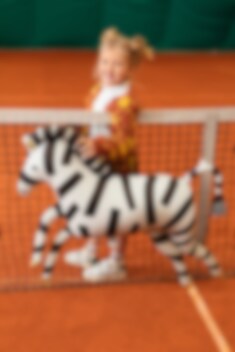 Stijlvolle folieballon van een zebra met goudkleurige details. Leuk om te hebben als decoratie voor je safari-thema kinderfeestje.