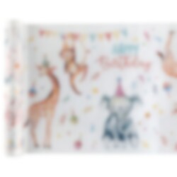 Superlekkere tafellopers in een witte kleur en met motieven van schattige safaridieren die klaar zijn voor een leuk kinderfeestje. Past goed bij onze andere accessoires in hetzelfde safari thema.