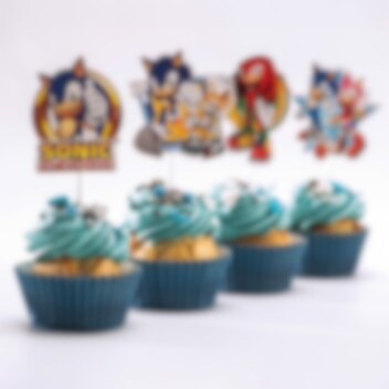 Set van 16 coole caketoppers met afbeeldingen van Sonic the Hedgehog. Ideaal om taarten en cupcakes een superheldenlook te geven tijdens het kinderfeestje. De toppers zijn 8-10 cm hoog.