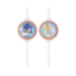 4 papieren rietjes met coole afbeeldingen van Sonic the Hedgehog. De rietjes zijn ca. 21 cm lang en de afbeeldingen hebben een diameter van ca. 6,5 cm.