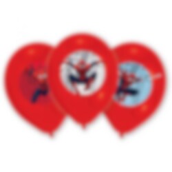 6 rode ballonnen met coole afbeeldingen van Spiderman. Een stoere decoratie voor het kinderfeestje. Opgeblazen hebben de ballonnen een diameter van ongeveer 28 cm.