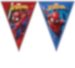 Stoere vlaggenlijn met aan beide kanten een cool motief van Spiderman. Een leuke decoratie voor het kinderfeestje. De vlaggenlijn is gemaakt van kunststof en is 2,3 meter lang.