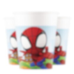 8 bekers met afbeeldingen van Spidey And His Amazing Friends. De bekers zijn 9 cm hoog en hebben een inhoud van 200 ml. De bekers zijn gemaakt van FSC-gecertificeerd papier.
