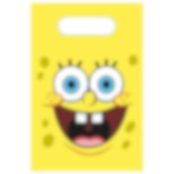 8 stuks gele papier uitdeelzakjes met een motief van SpongeBob's gezicht. Vul de zakjes met lekkere snoepjes en leuk speelgoed en geef ze vervolgens aan de gasten tijdens het SpongeBob kinderfeestje.
