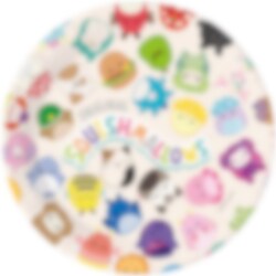 8 borden met afbeeldingen van kleurrijke Squishmallows. De borden zijn gemaakt van FSC-gecertificeerd, milieuvriendelijk papier en hebben een diameter van 23 cm.