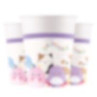 8 papieren bekers met schattige Squishmallows-figuren in mooie kleuren. Perfect wanneer je een uniforme en leuke tafelschikking wilt creëren op een Kinderfeestje met Squishmallows-thema. De bekers zijn gemaakt van milieuvriendelijk FSC-gecertificeerd papier, zijn ongeveer 10 cm hoog en hebben een inhoud van 200 ml.