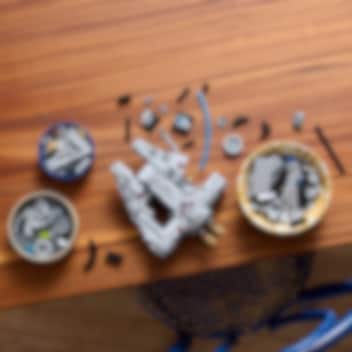 Roep al je creatieve krachten op om het beroemdste ruimteschip in het Star Wars universum te bouwen: Han Solo's Millennium Falcon. Leg direct herkenbare details vast van het ruimteschip zoals het te zien was in Star Wars: A New Hope. Plaats de Millennium Falcon in een dynamische hoek op de standaard en voeg het naamplaatje en de speciale jubileumsteen ter ere van 25 jaar LEGO®Star Wars toe om de geweldige blikvanger af te maken.