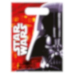 6 stuks uitdeelzakjes met motieven van Darth Vader voor een rode achtergrond uit de Star Wars serie. Vul de zakjes met snoep en een verrassingsspeeltje en geef ze vervolgens aan vrienden tijdens het Star Wars-kinderfeestje.