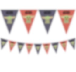 Stoere vlaggenlijn in prachtige kleuren met afbeeldingen van Grogu uit de serie The Mandalorian. Hang deze boven de tafel in de feestzaal voor een leuk effect op het Star Wars-kinderfeestje. De vlaggenlijn is gemaakt van papier en is ongeveer 2,3 meter lang.