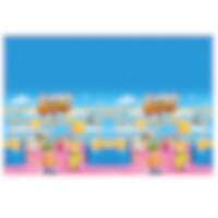 Tafelkleed van plastic met kleurrijke afbeeldingen van Stumble Guys. Het tafelkleed is 120 x 180 cm groot.