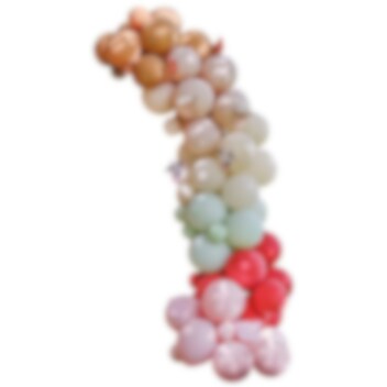 Mooie ballonnenboog in vrolijke kleuren die je zelf bouwt. Een echt indrukwekkende decoratie die perfect is voor het feest. De verpakking bevat in totaal 70 stuks ballonnen in verschillende maten en accessoires. De ballonnenboog is ongeveer 4 meter lang.