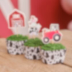 6 caketoppers met grappige boerderijmotieven die een mooie decoratie zullen zijn op uw gebak voor het kinderfeestje. Hoogte 10cm.