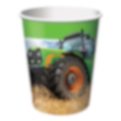 8 papieren bekers met leuk tractor motief. Vul de bekers met het favoriete drankje van je gasten als het tijd is om te kinderfeestje. De bekers zijn ongeveer 10 cm hoog en hebben een inhoud van ongeveer 266 ml.